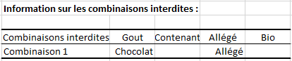 Le second tableau est un tableau récapitulatif des combinaisons interdites.