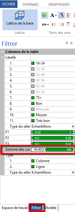 Enfin, de nombreuses autres options d'affichage sont disponibles. Par exemple, nous pourrions envisager un filtrage afin de ne garder que les points associés à une somme des contributions supérieure à, disons, 40% :