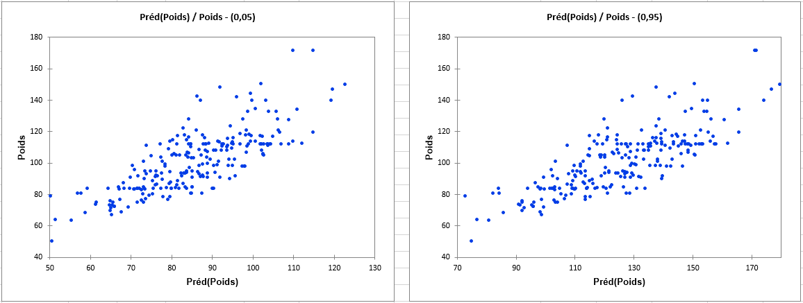Le graphique ci-dessous permet de comparer les prévisions et les valeurs observées pour les deux quantiles considérés.