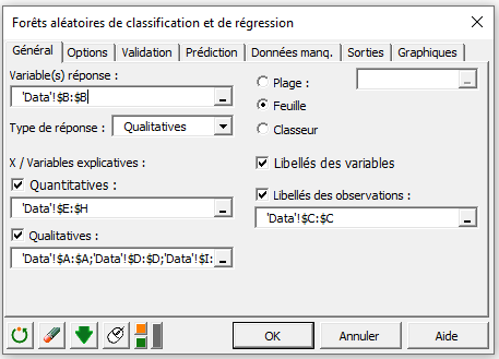Paramétrer une Forêt aléatoire de classification dans XLSTAT
