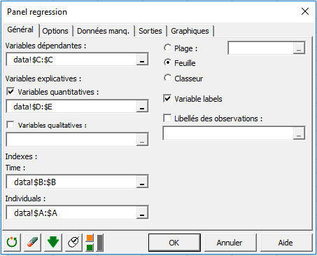 Jeu de données pour réaliser une régression sur des données de panel dans XLSTAT-R