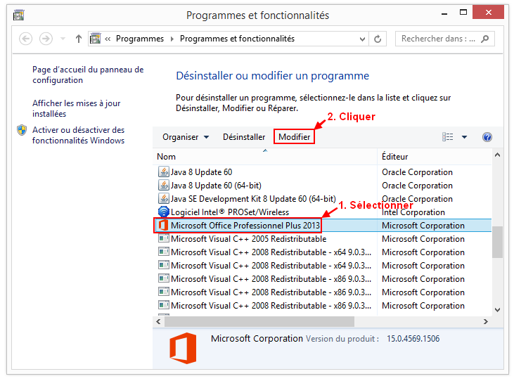 2. Cliquez sur Microsoft Office dans la liste. Cliquez ensuite sur le bouton Modifier.
