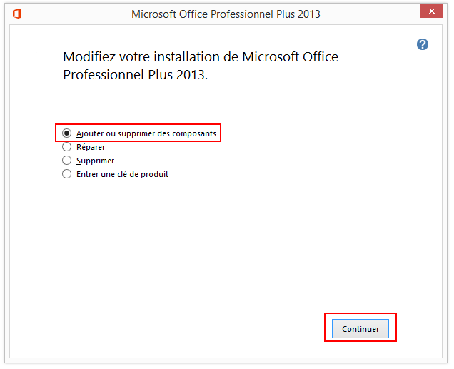3. Choisissez d'Ajouter ou supprimer des composants.