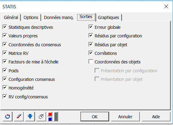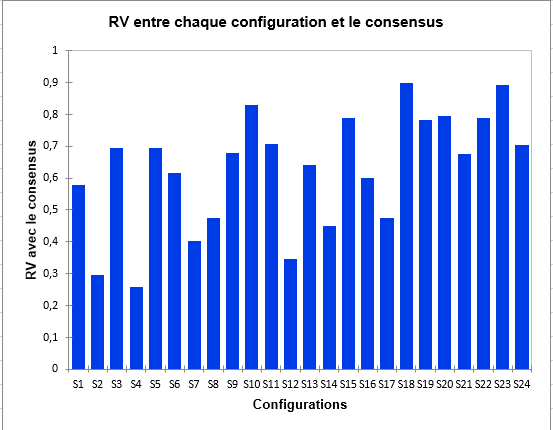Dans l’onglet Sorties, nous avons choisi d’afficher la matrice RV ainsi que le RV entre les configurations et le consensus pour avoir des indicateurs de proximité entre les sujets.