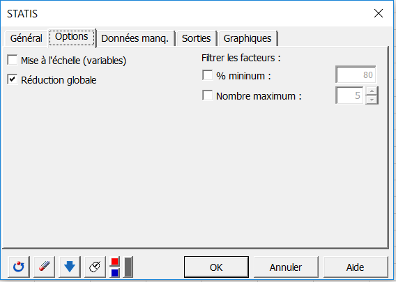 Dans l’onglet Options, nous avons choisi de réduire globalement les configurations pour ne pas donner d’effet d’échelle. A l’intérieur de chaque configuration, toutes les variables étant sur la même échelle, il n’est pas donc nécessaire de réduire les variables.