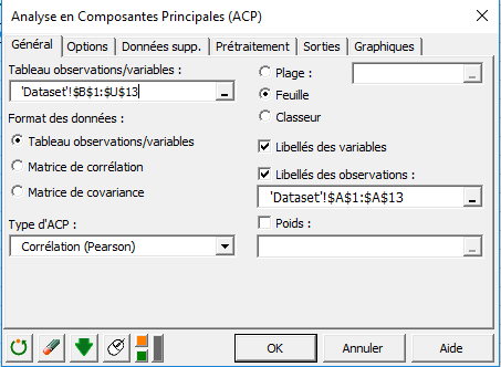 Paramétrer une Analyse en Composantes Principales