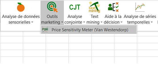 Une fois XLSTAT lancé, sélectionnez le menu Fonctions avancées / Outils Marketing / Price Sensitivity Meter.