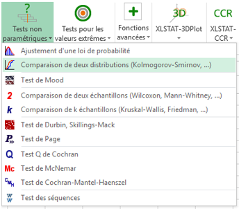 Allez dans XLSTAT / Tests non paramétriques / Ajustement d’une loi de probabilité.