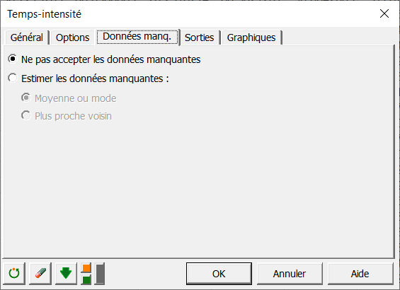 Dans l'onglet Données manquantes, nous choisissons de ne pas accepter les valeurs manquantes comme indiqué ci-dessous.