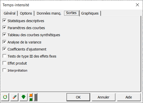 En utilisant le logiciel XLSTAT, nous avons été en mesure de réaliser une analyse Temps-Intensité sur un jeu de données simulé. Les paramètres des courbes mesurés ont été extraits par l'algorithme et nous avons pu contrôler que les courbes TI individuelles était conformes à nos attentes. Nous avons également généré des courbes synthétiques en suivant l'approche proposée par Liu et MacFie et comparé les résultats pour les deux produits.