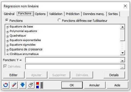 Dans l’onglet Fonctions, nous avons deux possibilités. Nous pouvons soit choisir une de fonctions préprogrammées (voir ci-dessous) ou définir notre propre fonction.