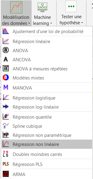 Une fois XLSTAT lancé, cliquez sur le menu XLSTAT/Modélisation/Régression non linéaire.