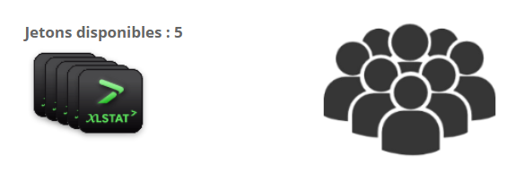 - Aucun utilisateur n'a encore lancé XLSTAT, nos cinq jetons sont disponibles :
