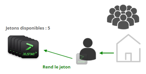 - À un moment donné, notre premier utilisateur décide de fermer XLSTAT. Le jeton est ainsi libérée, pouvant alors être utilisée par un autre utilisateur par la suite :