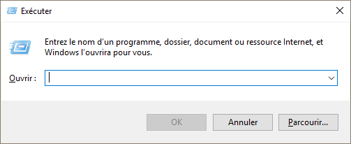 Appuyez sur les deux touches Windows + R de votre clavier. Ceci devrait ouvrir la fenêtre Exécuter. Elle devrait ressembler à ceci :