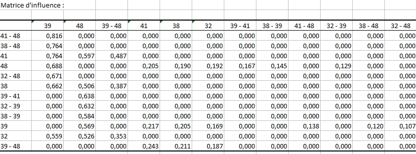 La matrice d’influence est une autre manière d’afficher les confiances de détection des items (placés en colonnes) sachant que les items en lignes sont présents.