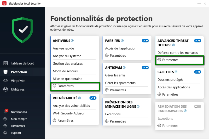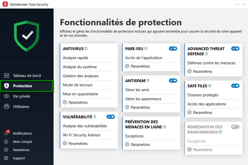 - Ouvrez le programme BitDefender et cliquez sur Protection.
