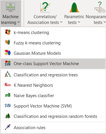1クラスSVMをセットアップするには、下記のように機械学習/1クラス・サポートベクター・マシン をクリックします: