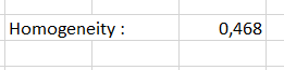 最後に、均質性は、消費者間の合意の全体的な指標(1 /評価者数と1の間)です。ここで、それは 0.468で、これは正しいですが、消費者間の視点の違いを示しています。