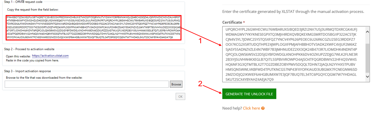 ステップ 2: ダイアログ・ボックスで提供されたアクティベーション・リクエストをコピーして、それをブラウザ上の Certificate ボックスに貼り付けてください。アンロック・ファイルを生成をクリックしてください。