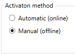 オフライン・アクティベーション・ウィンドウが自動で現れない場合は、手動でそれをトリガーするオプションがあります。それをするには、ライセンス・キーを入れて、そして、手動(オフライン)アクティベーション・メソッドを選択してください。