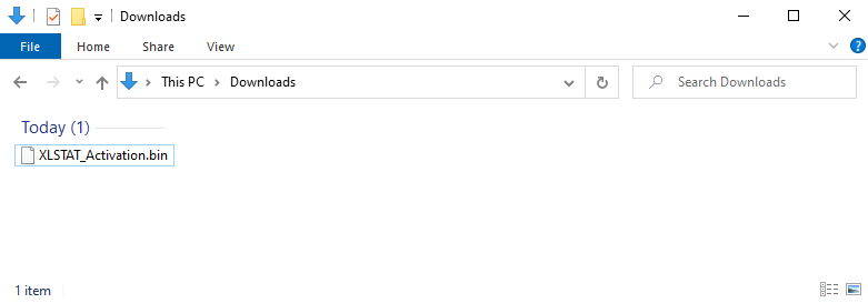 ステップ 3: ダウンロードされた XLSTAT_Activation.bin ファイルを探してください。ダウンロード・フォルダに保存されている可能性が高いです。