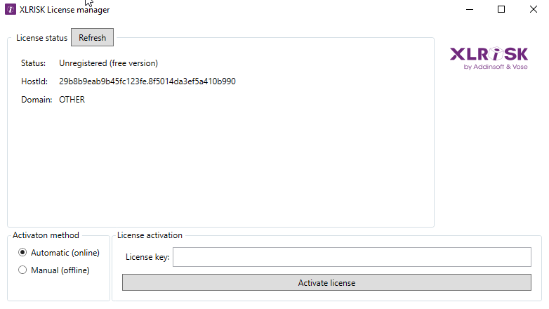 アクティベーション・プロセスの前にXLRISKがあなたのマシンにダウンロードされてインストールされていなければなりません。キーをアクティベートできるようにするには、まず次のことを行ってください: