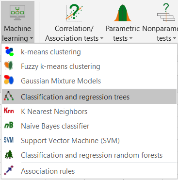 XLSTATを開いて、XLSTAT / 機械学習 / 分類および回帰木コマンドを選択してくだしさい。