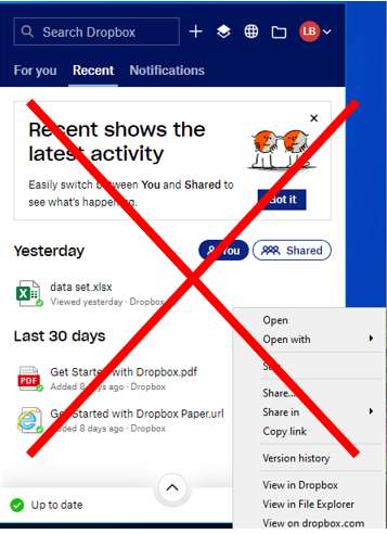 これは、Dropbox アプリケーションから直接Excelを開く場合であり、我々がそうすることを推奨しない理由です。