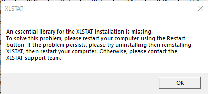 Microsoft ExcelでXLSTATを開始しようとしたとき、このようなエラー・メッセージが出た場合、
