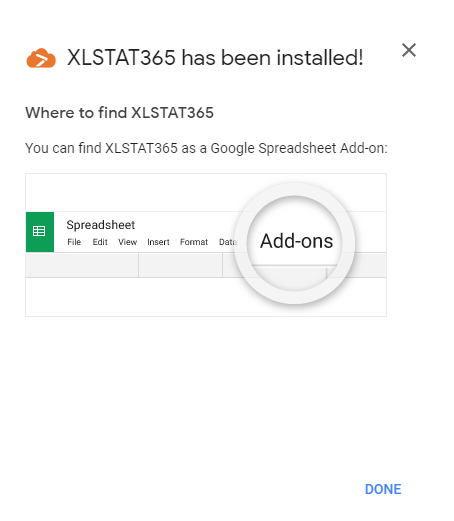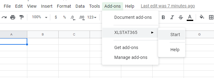 Google SheetsにXLSTAT 365をインストールするには、次のアドレスに行って、新しいスプレッドシートを作成してください: https://docs.google.com/spreadsheets/