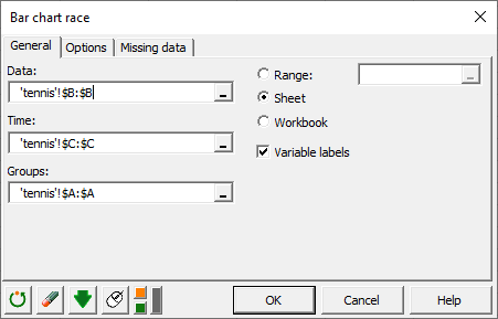 XLSTATでの棒グラフ・レースのアニメーションの設定