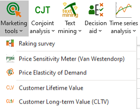 XLSTATを立ち上げると、高度な機能 / マーケティング・ツール / CLTV 機能を選択してください。