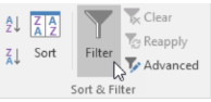 Excelスプレッドシートのデータ・メニューの並べ替えとフィルター・グループで、フィルターをクリックしてください。