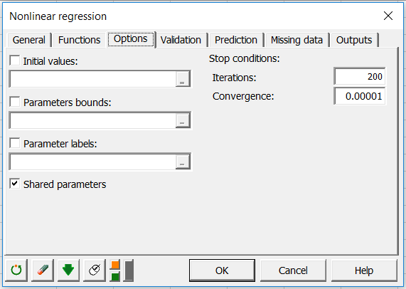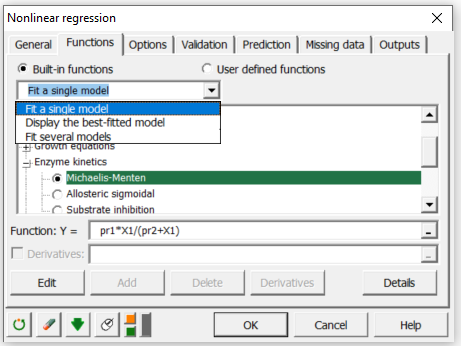 NB: XLSTAT はユーザーが自分で定義した関数を入力するかどうかの選択を提供します。そして、ユーザーは独自の導関数を入力するか、XLSTATにそれを推定させるかの選択もできます。