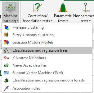 XLSTATを開いて、XLSTAT / 機械学習 / 分類および回帰木 コマンドを選択してください。