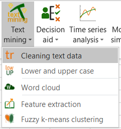 XLSTATメニューで、テキスト・マイニング/テキストデータのクリーニング コマンドを選択してください: