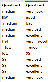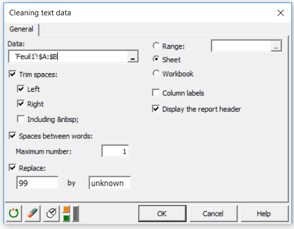 我々の目的は回答をクリーンアップすることです。単語の前、後、または間のスペース(複数)を除去したり、99をunknownに置換したりするために、XLSTATのテキスト・データのクリーニング・ツールを使用します。