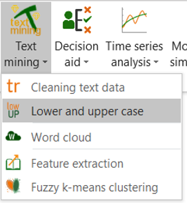 XLSTATのテキスト・マイニング・メニューの下の小文字と大文字機能を選択してください。