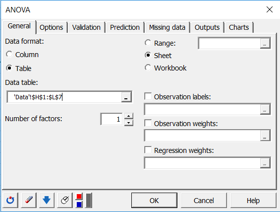 ボタンをクリックすると、ANOVAダイアログ・ボックスが現れます。