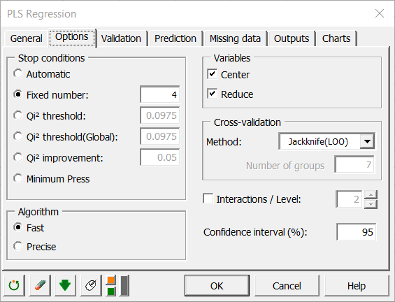 ボタンをクリックすると、PLS回帰ダイアログ・ボックスが表示されます。