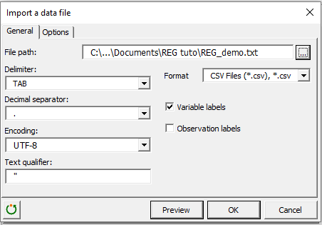 このチュートリアルの目的は、a) XLSTATのデータ・インポート・ツールを用いてExcelに大規模なtxtファイルをインポートして、 b) インポートされたデータで線形回帰を実行する方法を示すことです。