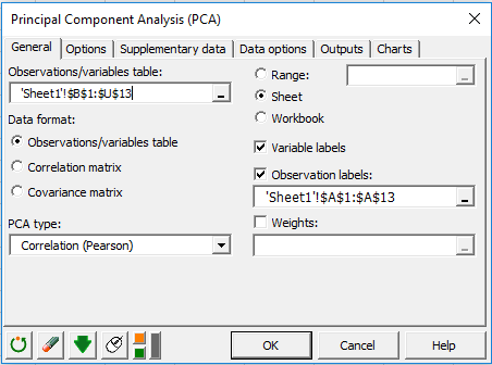 XLSTATを用いたExcel内での主成分分析のセットアップ