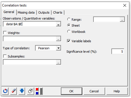 XLSTATã§ã®ãã¢ã½ã³ç¸é¢ä¿æ°ã®è¨ç®ã®ã»ããã¢ãã