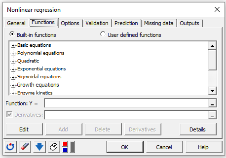 ここで、我々は2番目のオプションを選びます。追加をクリックして、我々のモデル式 F (C1, C2) を入力します。導関数オプションをチェックして、Excel シートからそれらの値を選択します。ユーザー定義関数のライブラリにモデルを追加するために保存をクリックします。