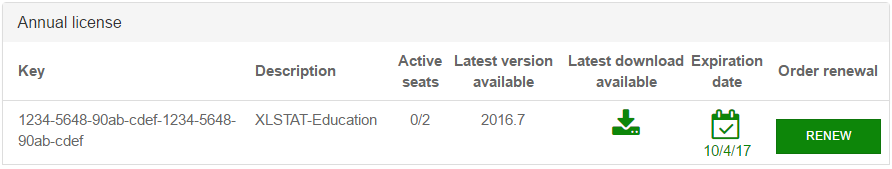 My XLSTAT は、**2013年以降***にXLSTATを購入された 方は、どなたでもご利用いただけます。ここであなたのライセンスを確認して、あなたがアクセス権をお持ちのXLSTATの最も新しいバージョンをダウンロードしたり、ライセンスの更新をご注文されたりできます。