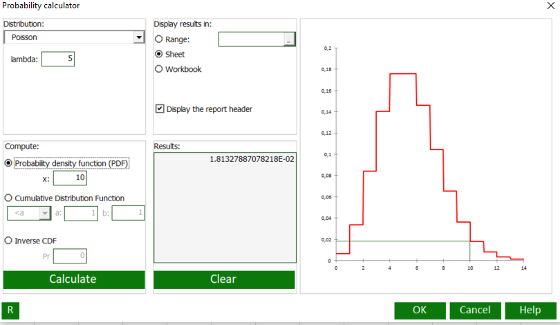 ドロップダウン・リストからポアソン分布を選択して開始します。